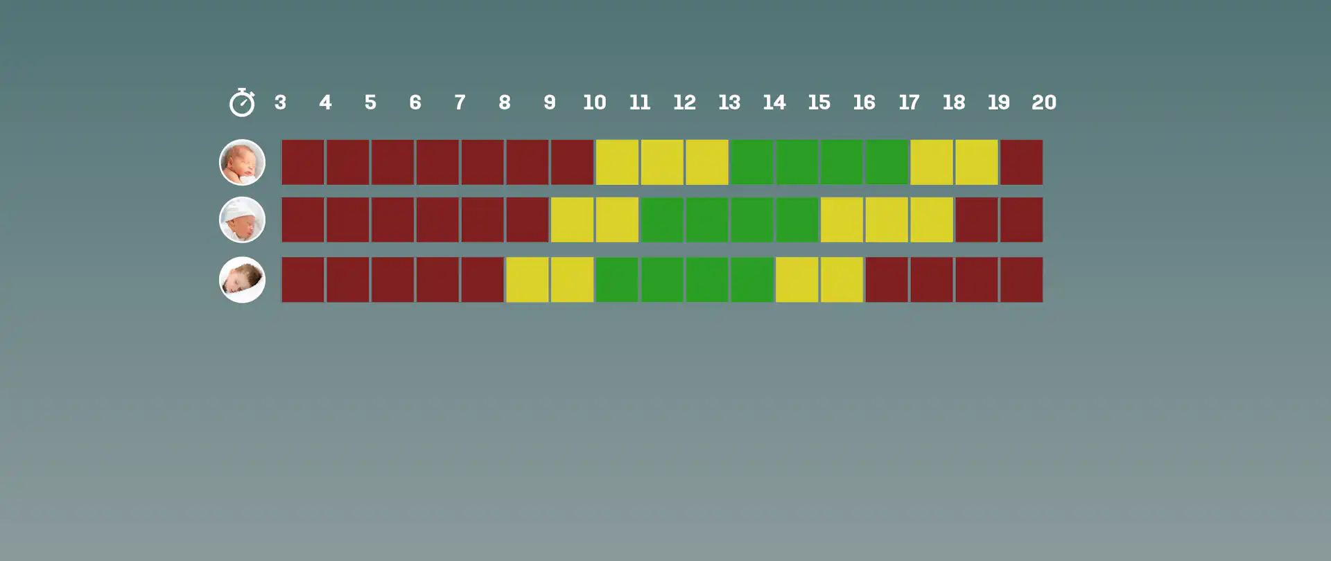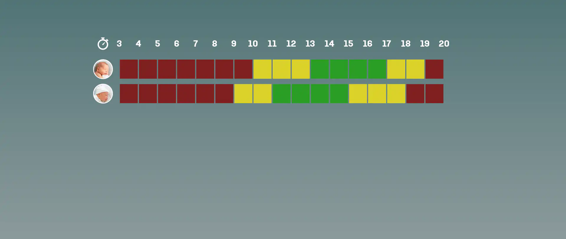 Oversikt over ni par med tenderpunkter: